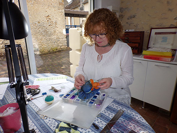 Pour réaliser des ouvrages de qualité, Corinne privilégie le lin ou le métis pour broder. La soie, le voilage et l’organza sont également employés à l’occasion de commandes particulières. Elle utilise des techniques de broderie classique à l’aiguille (point de tige, de chainette, torsadé, grilles sans fil tirés, point de Palestrine, point de Paris), la broderie Hardanger et la broderie blanche (plumetis, broderies Colbert, Renaissance ou Richelieu).