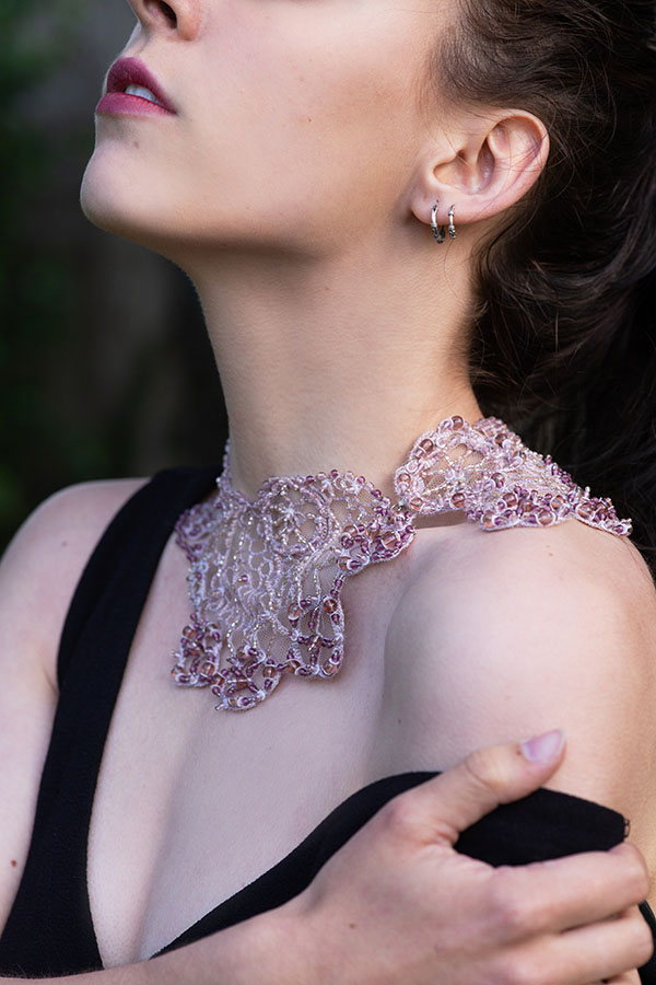 Un univers poétique et délicat qui brouille les frontières entre art textile et bijouterie.