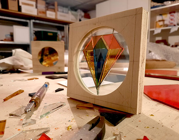 Descriptif de l’atelier: Le gemmail est une technique proche du vitrail qui permet d’assembler des verres colorés et de les superposer. A partir de modèles ou de votre propre créativité, venez expérimenter la coupe du verre et les jeux de lumière. Vous repartirez avec votre petit gemmail à poser ou suspendre.