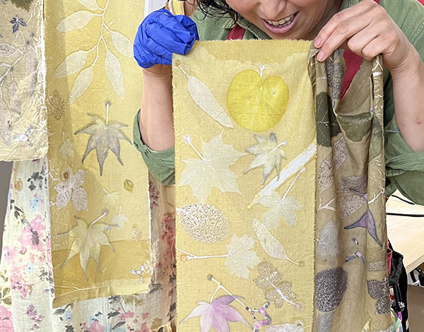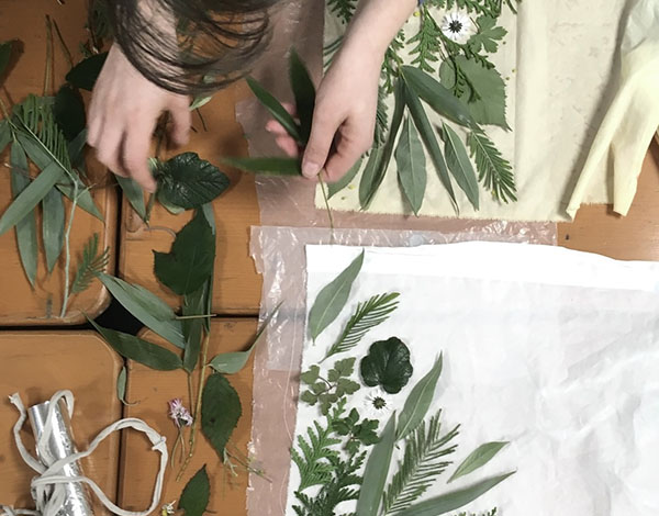Le temps d’un atelier, découverte des techniques d’impression végétale textile (ecoprint et tatakizome). Création d’un herbier textile en ecoprint (impression du végétale sur textile par cuisson vapeur).