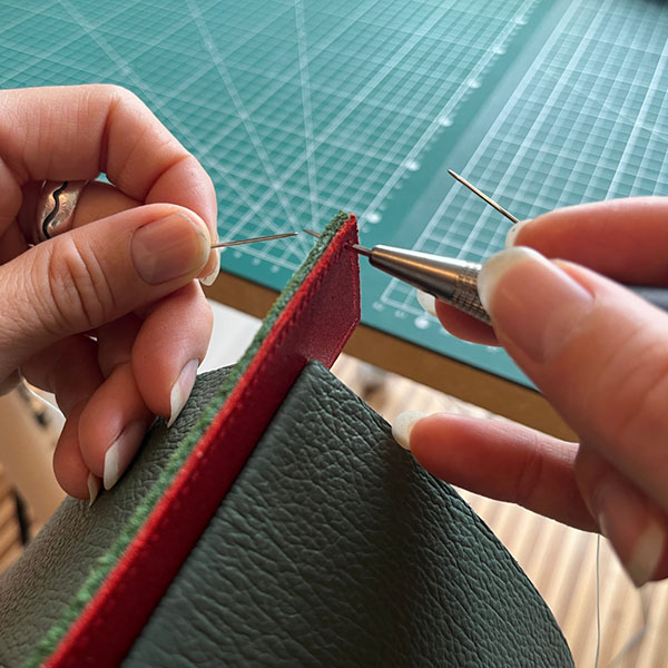 Après une première vie dans la comptabilité et l’administratif, Pierre-Emmanuel Chanioux décide en 2020 d’effectuer une reconversion professionnelle dans l’artisanat du cuir en obtenant un CAP de sellier-maroquinier. Désireux de créer des objets utiles, qui ont du caractère et qui portent l’empreinte de la main et du temps long, il lance le projet Atelier Karasu en septembre 2022. Influencé par l’esthétique, la philosophie et la culture japonaise, sa marque de maroquinerie propose, dans des couleurs affirmées, des produits intégralement confectionnés à la main avec le savoir-faire traditionnel de la couture manuelle au point sellier. En 2023, Pierre-Emmanuel quitte Paris pour s’installer à Provins (77), une ville à taille humaine, proche de la nature.