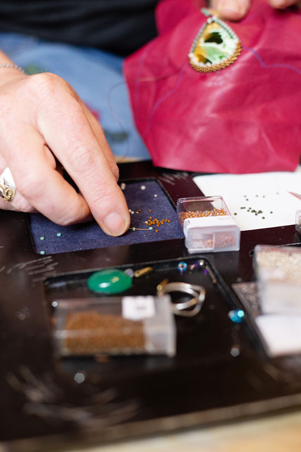 Voici une artisane d’art pas comme les autres ! Après une carrière d’acrobate, Véronique Lafaurie s’est prise de passion pour la broderie de perles, qu’elle pratique depuis plus de 10 ans.